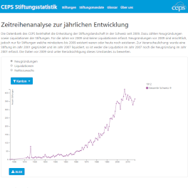 Das Center for Philanthropy Studies (CEPS) der Universität Basel stellt mit www.stiftungsstatistik.ch eine neue Plattform zum Stiftungswesen zur Verfügung. Über die Plattform lassen sich flexibel und direkt Informationen über Stiftungen in der Schweiz abrufen. Entwickelt wurde die Plattform von der Forschungsstelle Digitale Nachhaltigkeit.