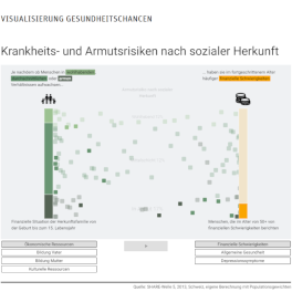 Für das Zentrum Soziale Sicherheit der Berner Fachhochschule hat die Forschungsstelle Digitale Nachhaltigkeit die Krankheits- und Armutsrisiken nach sozialer Herkunft visualisiert: