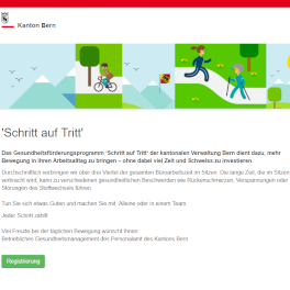 Das Gesundheitsförderungsprogramm "Schritt auf Tritt" der kantonalen Verwaltung Bern dient dazu, mehr Bewegung in den Arbeitsalltag des Kantonspersonals zu bringen – ohne dabei viel Zeit und Schweiss zu investieren. Die Forschungsstelle Digitale Nachhaltigkeit übernimmt dafür jeweils die technische Umsetzung:
