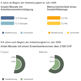 Für das Zentrum Soziale Sicherheit der Berner Fachhochschule hat die Forschungsstelle Digitale Nachhaltigkeit die Erwerbsintegration von Arbeitslosen visualisiert: