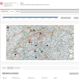 Im Auftrag des Schweizerischen Bundesarchivs hat die Forschungsstelle Digitale Nachhaltigkeit mehrere LINDAS (Linked Data Service) Show Cases visualisiert. Für einen Show Case wurden die Tierverkehrsdaten des Bundesamts für Lebensmittelsicherheit und Veterinärwesen (BLV) bezüglich der Ausbreitung von Tierseuchen visualisiert.