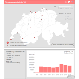 Im Auftrag des Bundesamtes für Umwelt entwickelte die Forschungsstelle Digitale Nachhaltigkeit eine interaktive Visualisierung des öffentlich zugänglichen Schadstofffreisetzungs- und Transferregisters der Schweiz (SwissPRTR). SwissPRTR liefert Informationen zur Freisetzung von Schadstoffen in Luft, Wasser und Boden sowie Transfers von Abfällen und Schadstoffen im Abwasser.